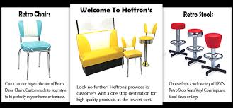 many more retro products from the 1950's from the people and manufacturers who made them.Our customer service and quality of 1950's Furniture is the best around. All of our Retro Seating is new, but custom made by the people who made it in the 40'sIn addition, our line of Retro Restaurant Furniture, Retro Home Bars, Retro Basement Bars, Retro Bar Furniture, Vintage Home Decor, Retro Stools, Retro Tables, Vintage Kitchen Furniture, and Retro Game Room Bars are designed as a "signature" piece for your "retro" room, or diner. We Make International Shipping Easy Due to the large amount of orders we receive from overseas, Heffron's has decided to expand and grow our business even larger. That is why we have expanded our locations of shipment so that no matter where you are located, we can send you the 1950's Retro products you desire. Laminates, Stools, Booths, Tables and more. At Heffron's A Moment in Time Retro Design you can be sure to get the highest quality products at the best prices possible.
