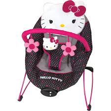 In addition, the Hello Kitty Bouncer has a removable soft headrest, toy bar, deep comfy seat and three-point safety harness. b Recommended for a baby up to 25 lbs Use Baby Trend bouncer only for a child who is able to hold head upright, unassisted and who is not able to walk or climb out of product Calming vibration comforts and soothes baby Baby bouncer seat has a 3-point safety harness Music box with 5 melodies and 3 soothing sounds with volume control Removable toy bar on Baby Trend bouncer 3 plush hanging toys to reach, bat and grasp Baby bouncer seat has a removable soft Hello Kitty headrest Deep, comfy seat for cradling; Questions about product recalls? site, and are no longer available for purchase. items only, not those of Marketplace sellers. Customers who have purchased a recalled item will be notified by email or by letter sent to the address given at the time of purchase. For complete recall information, go to Walmart Recalls.