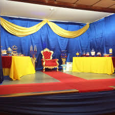 This absolutely magical Royal Prince Baby Shower was created by Carla Antunes and her sister in law Stephanie Lopes from Taunton, MA. Carla and Stephanie are event planners and the founders of Lasting Impression Event Planning. They have designed a wide array of events ranging from baby showers, first birthdays, wedding showers, and more in the southern Boston area. They designed this magnificent baby shower for Carla’s sister who was getting ready to have a baby boy. Her sister picked out the theme and they quickly set out on a mission to bring her vision to life. After viewing the photos we would say that they went above and beyond simply succeeding! It’s a shower fitting for William and Kate’s little prince! We love the fact that Carla has been a loyal LinenTablecloth customer since 2012! For this gorgeous event they used our polyester tablecloths and satin overlays, our polyester chair covers and satin sashes, and finally our satin fabric rolls to create the stage. The royal blue, red, and gold color scheme that they chose complements the theme perfectly!