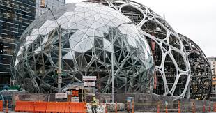 Mr. Bezos has said that Amazon is staying put in a city because the kinds of employees it wants are attracted to an urban environment. But the concrete and steel canyons around Amazon's new downtown properties do not have a lot of greenery. That is where the spheres and Mr. Gagliardo, whom Amazon hired to fill them with plants, enter the picture. Margaret O'Mara, an associate professor of history at the University of Washington, sees the spheres as a kind of Walden Pond under glass. "It's a retreat, a cathedral away from the hubbub of the city," she said. There was plenty of noise inside the spheres on a recent tour, as workers welded steel, pounded bolts into place and sawed concrete inside the half-built structure. The glass panels that make up the carapace of the spheres were being lowered onto steel supports in eye-catching shapes. Wearing a hard hat, Mr. Gagliardo dodged power cords and scaffolding, surveying an enormous mass of concrete where a five-story living wall — fabric pockets filled with plants — will eventually be installed.