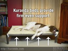This is especially important if the dog would otherwise be on a cold cement or tile floor, as in a kennel, or the hard plastic floor of a crate. An elevated bed provides firm, even support. It’s the difference between sleeping on a mattress and sleeping on a bean-bag chair. Think about it: You wouldn’t want to sleep all night on a bean-bag chair, would you? You’d wake up pretty stiff, even if you are perfectly healthy. That’s why our orthopedic beds are meant for every dog, not just dogs with arthritis, hip dysplasia, and other joint problems. Lying on the floor can put pressure on your dog’s hips, shoulders, and elbows, and a traditional puffy bed does not do much to reduce that pressure. An elevated bed is portable. Fluffy beds can be bulky and surprisingly heavy, which can be annoying if you need to move the bed to anther room. Kuranda beds are lightweight, so they are very easy to move from room to room – or even outside! They also don’t take up much room in a car, so you can give your dog a familiar place to sleep while traveling or boarding.