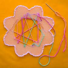 Separate six-ply embroidery floss into two-ply pieces and work with 18 inches of floss or less at one time. At the top of one seam, push up through the fabric at the edge of the octagon shape about 1/2 inch from the vertical seam. Move your needle down 1/2 inch and over the other side of the seam. Push the needle into the fabric about 1/4-inch from the seam and up another 1/4 inch to the right. Wrap the thread under the needle. Decorative Stitch Step 2 Draw the thread out over the loop made with the last stitch. Decorative Stitch Step 3 Gently pull the thread tight to the right of the stitch. Decorative Stitch Step 4 Gently pull the thread tight at an angle across to the left side of the seam. Start your next stitch on the left 1/2 inch lower than the stitch on the right and about 1 inch below the stitch directly above it on the same side. Decorative Stitch Step 5 Push the needle down through the fabric on the left side 1/4 inch from the seam and up 1/2 inch from the seam with the thread under the needle.