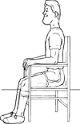 A sitting posture that approaches the natural resting position (b), is a more suitable position and allows the spine to carry the body weight in a more comfortable way. This is “Balanced Seating” and the best sitting position to ward off back pain and stiffness. A posture seat that tilts the body forward encourages this natural posture. Opposing muscle groups are balanced and the lumbar curve is preserved producing balanced seating in which the back is straight, the joint angles are open and the muscles are relaxed. This position provides greater mobility and relieves pressure on the lungs and stomach. Children will often tilt forward on the legs of their chair to relieve back pressure. By tilting their chairs forward they avoid bending their backs, allowing the front and back muscles to relax, and thereby sitting in a more comfortable position with a straight back. The fidgeting they may be admonished for is in fact the key to finding the proper sitting position. While riding a horse, the rider sits upright, yet maintains a lumbar lordosis because the thighs are sloping downwards.
