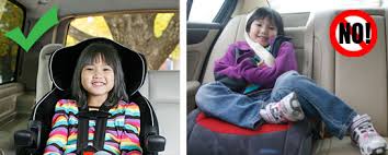 When is my child ready for a booster seat? Don’t rush to move your child to a booster seat before they’re ready. Each time you “graduate” your child to the next seat, there’s a reduction in the level of protection for your child. Keep your child in each stage for as long as possible. Your child is ready for a booster seat when they have outgrown the weight or height limit of their forward-facing harnesses, which is typically between 40 and 65 pounds. Read your forward-facing car seat’s owner’s manual to determine height and weight limits, and keep your child in a harnessed seat for as long as possible. Children at this stage are not yet ready for adult safety belts and should use belt-positioning booster seats until they are at least 4’9″ and between 8 and 12 years old. Safety belts are designed for 165-pound male adults, so it’s no wonder that research shows poorly fitting adult belts can injure children. Don’t Skip a Step A child who has outgrown the internal harness or height limitations of a forward-facing child safety seat.