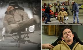 A new viral video is sending the web into a spin. Two self-described 'rednecks' have starred in a bizarre clip showing a Discovery Channel host being strapped to a modified office chair and spun around at wild speeds - thanks to a pair of Nitrous tanks. 'Holy s***, I'm dizzy as f*** now,' host AZN was heard saying just seconds after he stopped spinning. As he grimaced in pain, he was heard saying: 'I'm all right, I'm all right, I'm OK.' Scroll down for video Discovery Channel host AZN stars in a new viral video where he is flung around by Nitrous tanks on an office chair His co-host, Farmtruck, then leaned in an apologetically asked if there was anything he could do to help his buddy. 'How to I apologize to my best friend,' Farmtruck said, before AZN jokingly chimed in: 'You find a new best friend.' 'When I pulled that string and I turned around and saw AZN spinning, I wasn't sure what I was looking at,' Farmtruck explained. 'I didn't expect him to be bucking up and down like he was riding on a bronco.