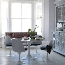My dilemma is such…I adore the Saarinen table with the marble top, I wanted to purchased the table and tulip chairs for the dining room but thought it might be too matchy matchy, I was considering purchasing an antique pedestal round table and getting only the tulip chairs. But I REALLY love the dining table too so I am not sure what to do, what do you think would look best in your opinion? In general, I prefer things not to be matchy-matchy as well. However, dining rooms are the one place where I’m not opposed to a matching set, especially when it is something so classic and beautiful as the Saarinen tulip table and chairs. I mean, what’s not to like about this room: However, it is a very modern, streamlined look so if you’re goal is to achieve a more eclectic feel, I think your first instinct of mixing the table or chairs is a good one. So then the next question is do you get the table or chairs? That’s a tough call. The more popular option seems to be using the table with different types of chairs: