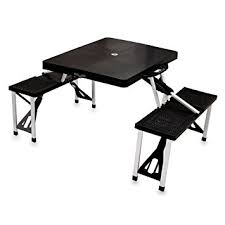 New (15) from $82.47 Picnic Time 'Portable Folding Picnic Table' with Seating for 4, Black Picnic Time Outdoor Canopy Sunshade Umbrella 5.5' FREE Shipping. 5.5 x 18 x 36.25 inches Perfect for camping, picnics, or days at the beach Portable Folding Picnic Table with Seating for 4, Black This Portable Folding Picnic Table by Oniva, a Picnic Time brand, features a compact fold-out table with bench seats for four that you can take anywhere. When not in use, it collapses into an easy-to-transport suitcase-size of 33.5 by 4 by 13 inches. This table and chairs unit has a maximum weight capacity of 250 pounds per seat and 20 pounds for the table, and is constructed of ABS plastic, making it is easy to clean, while the frame has an aluminum alloy construction for durability. Measures open: 54 by 34 by 25.8 inches. Keep it in the back of your car for spontaneous picnics or tailgating! Backed by the Picnic Time Family of Brands BUILT TO LAST Lifetime Guarantee. 36.2 x 18 x 5.5 inches
