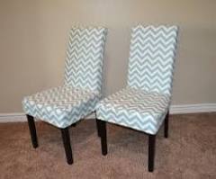 Dining room chair covers Diy Chair Chair Redo Dining Chair Makeover Slipcovers For Dining Chairs Parsons Chair Slipcovers Dining Room Chair Covers Recover Chairs Slipcover Chair Chair Fabric Forwards Capital E easy parson chair slipcover tutorial with chevron fabric!!! Two chairs for 10 bucks. Parsons chair slipcover tutorial! Great idea, I can cover the parsons stools at the island with a wipeable cloth fabric until the kids are old enough not to spill every meal!