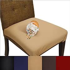 Ships from and sold by SmartSeat. New (1) from $19.99 + $4.28 shipping Shop products for every room in your home from your Garage to your Kitchen. SmartSeat Dining Chair Cover and Protector (Sandstone Tan), Removable, Waterproof, Machine Washable, Stain Resistant, Soft, Comfortable Fabric for Kids, Pets, Entertaining, Eldercare LAMINET Vinyl Chair Protectors, Clear, 26X253/4-Inch, Fits Chairs up to 21x21-Inch, Set of 2 FREE Shipping on orders over . The SmartSeat chair protector is the better way to protect your dining room and kitchen chairs from stains and spills. The SmartSeat chair protector is a waterproof, stain resistant and machine washable cover. It provides the same protection as vinyl covers with the benefits of soft and comfortable fabric. The cover is easy to use and fits most chair styles and sizes. Adjustable straps securely attach the cover to your chair. Use it at mealtime, for arts and crafts or leave it on for a clean and attractive look. Available in five wonderful colors: Sandstone Tan, Chocolate Brown, Metro Black, Burgundy Red and Midnight Navy Blue.