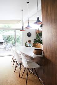The kitchen/living room had one dark wall and dark beams, which we knew we wanted to paint white, to reflect all of the light coming in through the windows to the backyard. We were really happy that the 1964-original cabinetry had been left in place (save for the cabinets which once sat over the counter). One day we plan on replacing the appliances and countertops, but we really do love the old-wood cabinetry. We also love the cork floors, which seem to tolerate all sorts of wear with ease. (By the way, these photos were taken the same afternoon we landed in California, having logged over 40 hours of travel to get home from Bali. I remember so well walking into this empty room and feeling so happy to be home—but also so exhausted!) We switched out the existing light features for some copper ones we’d purchased on our travels. (I talk more about that, here.) And, after that, we got out the paint. There was very little to do in the dining room besides furnish it (like much of the house, thankfully!).