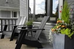 The same design modifications were done to the seat of adirondack chairs. Just like the back, the seat in the original design was just a flat, single piece of wood. Modifications done to better fit the body’s natural curvature provide a much more comfy seat. Adding individual pieces of wood at different angles and heights allowed a much more comfortable seating position. Leaving gaps between each wood panel also adds additional comfort while making the chair lighter at the same time. In that same sense of making chairs lighter, an even more extreme modification to the original design is the removal of wood altogether. Plastic adirondack chairs are on the rise but there are many pros and cons when it comes to this product. Starting with the major pro to plastic adirondack chairs: they can be produced and sold for a much lower price. Coming from a single plastic mold, the manual labor hours to produce one is almost nothing. Being just a single piece of thin plastic, these chairs only weigh between 5-10 lbs, making them much easier to move and store.