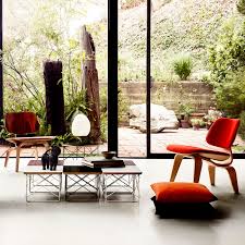 more so those that Ray used to make sculptures. The Navy contract allowed Charles to open a professional studio, and the attention-grabbing plywood furniture the firm produced prompted George Nelson, the director of design of the furniture-maker Herman Miller Inc., to enlist Charles and (by association, if not by contract) Ray in 1946. Some of the first Eames items to emerge from Herman Miller are now classics: the “LCW,” or Lounge Chair Wood, and the “DCM,” or Dining Chair Metal, supported by tubular steel. The Eameses eagerly embraced new technology and materials, and one of their peculiar talents was to imbue their supremely modern design with references to folk traditions. Their “Wire Chair” group of the 1950s, for example, was inspired by basket weaving techniques. The populist notion of “good design for all” drove their “Molded Fiberglass” chair series that same decade, and also produced the organic-form, ever-delightful “La Chaise.” In 1956 the “Lounge Chair” and ottoman appeared — the supremely comfortable plywood-base-and-leather-upholstery creation that will likely live in homes as long as there are people with good taste and sense.
