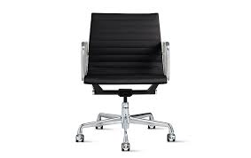 The chair's clean, curvilinear lines enhance any décor and work well in your home office, dining area, and living room. Available in fabric, vinyl, or leather, these Eames chairs are equipped with an innovative suspension that creates a firm, flexible “sitting pocket.” It conforms subtly to your body’s shape and maintains your comfort. With an aluminum frame and base, the chair is strong, yet lightweight and easy to move. Earth-friendly, too: made of 61 percent recycled materials and 88 percent recyclable at the end of its useful life. A major technical achievement. You can choose leather, vinyl, or fabric in lots of colors, including some prints. If you choose leather upholstery, you can opt for our standard or our new premium leather, a semi-aniline, dyed leather with 100 percent natural full grain. Color variations and surface marks are an inherent characteristic of this material, which will acquire wrinkles and creases and develop a rich patina over time. The new premium leather option is available in black and pearl.