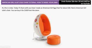 On the scale of 1-10, I would rate this a 9.Does anyone else have this piece already? What do you think of it? If not, is it on your wish list? Skip to Wiki Navigation Skip to Site Navigation The requested page title was invalid, empty, or an incorrectly linked inter-language or inter-wiki title. It may contain one or more characters that can't be used in titles. Return to American Girl Wiki. Ad blocker interference detected! Wikia is a free-to-use site that makes money from advertising. We have a modified experience for viewers using ad blockers Wikia is not accessible if you’ve made further modifications. Remove the custom ad blocker rule(s) and the page will load as expected. Sorry, the page you were looking for was not found.We are back into the swing of things after the New Year, and we are excited to see what 2016 brings! To celebrate the new year, here is a cool little tutorial that I dreamed up for everybody. I gave a cute little egg chair for 18″ dolls to my daughter for Christmas, and I thought that you would all like to know how to make one too.