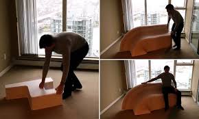 His name, ‘FlexibleLove', was derived from the concept of a ‘flexible love-seat’ – that is, seating that can hold up to sixteen people simply by altering its shape and length. Each of his pieces is constructed using the same honeycomb structure, to allow for quick and easy extension and collapse. When the FlexibleLove chair is first used, about two millimeters (about 1/10th of an inch) will bend, but these marks across the surface will eventually level off, leaving a velvet-like appearance. It is also recommended that the chair be folded regularly to minimize the signs of use, and moistening the surface slightly before folding will also help to achieve a better look. As the name suggests, the FlexibleLove model 8 can accommodate up to eight people. When folded it measures 25 x 21.8 x 5.1 inches and it stretches to 25 x 21.8 x 140.4 inches. It can support weight up to 2116.44 pounds (averaging out at about 264 pounds per person) and weighs 28.66 pounds. The FlexibleLove model 16 will seat up to 16 people and when folded measures 25 x 21.8 x 8.8 inches.