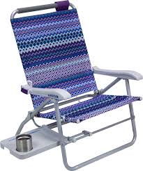 It does not have an armrest, headrest, cup holder, or sun shade. But what it lacks in features it makes up for in utility. "To Maximum The Ultimate In Comfort!" declares an ad for the Everywhere Chair. I don't know what that means, but I couldn't agree more. Rio Brands Backpack Beach Chair , $40.00 The perfect beach chair—almost. The only thing the Rio lacks is a built-in sun shade. If you can get by without one of those, then you're golden. Or perhaps golden brown. It has four—count 'em!—four positions. You can go from more or less upright to lazily reclined simply by lifting the arm rests. It has straps so you can wear it like a backpack. It has a roomy compartment for your beach essentials. The cupholder isn't too bad, either. But what I like best about this chair is the headrest. On two of the other chairs (the Wilderness and the Kelsyus), the headrests do little to protect your head. The fine people at Rio Brands realize that not all of us are the same height, and so their headrest is adjustable.