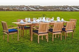 Ships from and sold by Wholesale Teak. New (1) from $1,849.00 + $313.56 shipping New 9 Pc Luxurious Grade-A Teak Dining Set -94" Rectangle Table And 8 Stacking Leveb Arm Chairs #WHDSLVd Usually ships within 4 to 5 days. Star brite Premium Golden Teak Oil FREE Shipping on orders over . New 9pc Grade-A Teak Outdoor Dining Set-one Double Extension Table & 8 Patara Stacking Arm Chairs plus cushions New 7 Pc Luxurious Grade-A Teak Dining Set - 94" Double Extension Rectangle Table & 6 Giva Chairs (4 Armless & 2 Arm / Captain) Amazonia Arizona 9-Piece Eucalyptus Square Dining Set Set includes: 94" Rectangle Table and 8 Stacking Arm Chairs. ** Wood Umbrella Hole Plug is also provided. ** 2" Umbrella Hole is available in the middle of the table. ** Umbrella is not included with the set, but can be purchase separately, please inquire. ** DON'T FORGET TO ENQUIRE ABOUT OUR SUNBRELLA CUSHIONS (SOLD SEPARATELY) ** If you need more chairs, please let us know.