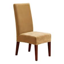 Dining Room Chair Slipcover Overall: 42'' H x 19'' W x 18'' D Overall Product Weight: 0.55lb. Cushion Design: Box cushion Attachment Type: Elastic Edges Stretch Pique Short Chair Slipcover Overall: 42'' H x 18.5'' W x 17.5'' D Overall Product Weight: 1.03lb. Cotton Duck Full Length Dining Room Chair Slipcover Overall: 42'' H x 23'' W Overall Product Weight: 2lb. Stretch Pinstripe Dining Chair Slipcover Overall Product Weight: 0.97lb. Scroll Classic Dining Chair Skirted Slipcover Overall: 42'' H x 24'' W x 24'' D Overall Product Weight: 2.5lb. Soft Suede Dining Chair Slipcover Overall Product Weight: 0.68lb. Overall: 39'' H x 18'' W x 19'' D Overall Product Weight: 1lb. Cotton Duck Shorty Dining Chair Slipcover Stretch Pique Dining Chair Slipcover Overall Product Weight: 1.32lb. Vivian Stretch Polyester Dining Chair Slipcover Overall: 22'' H x 15'' W x 22'' D Stretch Jacquard Damask Dining Chair Slipcover