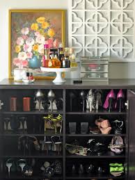 This makes it easier to see shoes at a glance without wasting time searching for a pair to match your outfit. This is both a time saving and aesthetic solution to shoe storage. Rakku Design's shoe wheel can hold up to 30 pairs of shoes in its 20 expandable pockets. The design not only saves space, but shoes are just a spin away and easily accessible. Men's shoes typically take up more space than women's, making it important to utilize the allotted space more carefully. Take advantage of all unused space, like the section under this window seat, to create more storage space. The open cabinetry makes the shoes easily visible and within reach, and the rich, dark cabinetry gives the closet a masculine look. Jeri Lynn Repp of Alabaster Box came up with a solution for an 8 x 48-inch unused area of her walk-in closet. Using pinewood boards -- stained with scratch-resistant and easy-to-clean color to resemble rustic, exotic hardwood -- Jeri Lynn constructed eight-foot tall shelving to house her shoes, boots and other accessories.