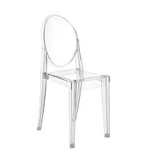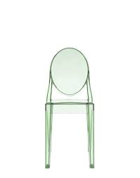 Skip to Main Content Buy today, get free shipping for the next 30 days Buy open box item(s): From Overall Product Weight: 7.9lb. The comfortable and elegant Victoria Ghost Chair combines geometric, modern lines in the seat and legs with a rounded backrest that echoes the form of antique medallions. The chair's fluid, serene design allows it to complement any surroundings while simultaneously drawing attention to its appealing lines. Made of transparent or batch-dyed polycarbonate, the chair is sturdy and durable even as it displays a delicate, ethereal appearance. This versatile side chair, suitable for indoor and outdoor use, has been featured in numerous magazines and adds elegance and lively panache to a variety of settings. Designed by: Philippe Starck, 2005. This is a chair born of classic lines with a rounded backrest that recalls the shape of antique medallions, whilst the seat is linear and geometric. Victoria Ghost is made of transparent, coloured polycarbonate and formed in a single injection mould.