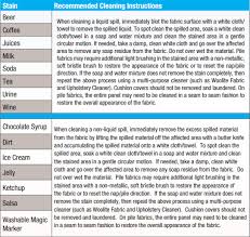 Care & Cleaning of Upholstery To successfully clean fabric, it is important to determine the type of fabric and the recommended cleaning code. This information can be found on the tag attached to the furniture. Spot clean only with water-based shampoo or foam upholstery cleaner. Pretest a small, inconspicuous area first. Clean spots or stains from the outside to the middle of the affected area to prevent circling. When cleaning a spill, blot immediately to remove spilled material. Pile fabrics may require brushing with a nonmetallic, stiff bristle brush to restore appearance. Do not use solvents to spot clean. Hot water extraction or steam cleaning is not recommended. Cushion covers should not be removed and laundered. To prevent soiling in general, frequent vacuuming or light brushing with a nonmetallic, stiff bristle brush to remove dust and grime is recommended. Use a professional furniture cleaning service when an overall soiled condition has been reached. Spot clean only with a water-free dry cleaning solvent.