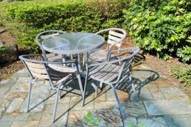 • Continue vinyl strap replacement The plastic components of outdoor furniture (shown)—vinyl straps, plastic pegs, and mesh slings—last about 10 years. In the meantime, the easiest way to keep outdoor furniture looking good is to give it a quick scrubdown with mild dish soap, followed by a water rinse. In addition, each material has its own particular needs. Straps and Slings__Both are made of vinyl, which suntan oil stains, sunlight fades, and dirt and mildew stick to like magnets. A spritz with a vinyl cleaner such as FeronClean or a mild all- purpose cleaner like Fantastik or Formula 409 and a swipe with a cloth is the best way to remove grime. Never use abrasives, bleach, or ammonia, all of which strip vinyl of its UV protection. Exposure to pesticides and fertilizers does the same thing. Encourage sunbathers to cover chairs with a towel. Metal__Touch up the paint as soon as it's nicked. Do not apply car wax, which will leave a cloudy buildup. Storage__The best place for furniture in the winter is a dry spot indoors.