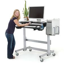 Several ergonomic forearm rest styles are available online. Choose one that doesn’t lock you into a single posture. If you’re using the arm rests on your chair arm but are experiencing discomfort, try removing the arm rests. They can sometimes place your arms in an awkward position or put pressure on the nerves in your elbows. Make sure to support only your arm weight on the forearm rest, and not your full upper body weight. When using a notebook computer over long periods of time, attach it to a docking station and use an external keyboard and mouse. If you don’t have a docking station, you can raise the height of your notebook screen to eye level and then plug in a USB keyboard and mouse. When you’re away from your desk, consider using a notebook mouse instead of the mouse built into your notebook. Check out the wired and wireless notebook mouse devices designed by Microsoft. Use a sit/stand workstation. Try using an adjustable sit/stand desk that supports neutral postures.