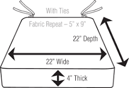 Treat cording separate regardless if it is the same as the main fabric and order a minimum of 1 yard. We run all directional fabrics vertical (front to back) on a product unless otherwise stated. Please note that vertical run fabrics may cause seams on cushions longer than 50″. Fabric Yardage Measurement Examples 22″ (longest side) + 8″ (4″ thickness x 2) + 2″ (ties) = 32″ Length