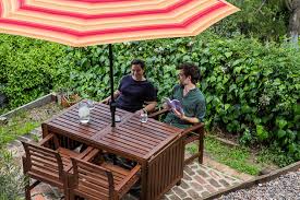 A lot of people have asked questions about our Applaro outdoor furniture. We got it last year from Ikea and the bench, table, and recliners are all from the Applaro line. So, the big questions on the table (har, har) are… how are they holding up one year later? Do we still love them? Wishing we had gone in a different direction? Would we recommend them to other people? Today is about answering all of those questions. Last year, we bought the bench (read about that here) and the table (and that here) to kick start our back patio makeover. A little bit later, we went ahead and bought two of the recliners (read about them here) in the stained wood finish. We LOVED the pieces. I’ll say it right now, if you have a small space and you need flexibility to do more than one thing in that space, this is a great table option. It’s on the narrow side, so it does not take up a lot of room, and it has detachable “wings” that can make it long enough to seat ten people. Or maaaaybe twelve, if you’re tricky about it.