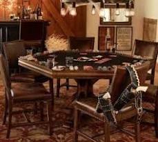 Rae Backus - poker table with game in progress with 6 chairs; Signature Elite poker table with 6 Premium Chairs .floating deck with pea gravel beneath Luxury Premier poker table with 6 Dining Chairs In this teenage girl's bedroom, the homeowners chose grass-cloth wallpaper in lieu of paint and brought in white accents with pillows, pendant fixtures from Shine by S.H.O. and a West Elm lacquered desk and chair To go with the bistro table The Elite Poker Table Blue + Dining Top + 6 Premium Lounge Chairs with Free Shipping - from the Texas Poker Store Poker table with a double pedestal base and 6 matching side chairs. Converts into a classic dining table with a removable top. 48" Octagon Poker Table with Folding Legs in Green Arcade room idea- love the green carpet with it. Put poker table where the chairs are. The Elite Poker Table 6 with Dinning top and 6 chairs Tiffany Style Table Lamp With Lighted Base Wooden Kitchen Chairs With Arms