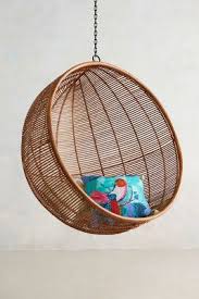 The Ottoman Anthropologie‘s Susila ottomans are beautiful & rustic, bound together with brown leather strips. The Classic Chair Anthropologie‘s Pari rattan chair is a timeless black seat that celebrates minimalism & practicality.I'll say it up front: Hanging chairs are not for everyone. However, if you're willing to take a chance on a piece that's a little over-the-top, the effect is eye-catching and undeniably fun. To start your search, we've rounded up 10 stylish options that will take your home decor to new heights—and that you'll want to hang out in all day long. If you're going to hang a chair from the ceiling, you'll definitely want to make sure you secure it properly. Follow eHow's simple instructions for anchoring from a ceiling joist. If you're still not confident that you won't end up on your bum, hire a handyman. Azul Bereber Crochet Hanging Chair Crocheted by hand from white organic cotton, this creative swing seat is a must-have for an artful bohemian home.