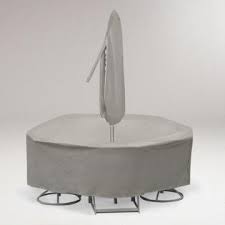 World Market's outdoor furniture covers are made of water-repellent, superior quality vinyl to protect outdoor furniture from wind, rain and other harsh weather. Explore our selection of affordable options to ensure your outdoor furniture stays in pristine shape for the long term. In addition to keeping your outdoor dining chairs, benches, sofas and tables safe from rain, wind and snow, our fleece-backed covers protect furniture edges and finishes. We've designed durable covers for a variety of outdoor seating arrangements, including occasional chairs, oversized chairs and chaise lounges. You'll find perfectly shaped covers for bistro tables and even backyard fire pits. Outdoor furniture comes in many shapes and sizes, so we've included covers for oval, rectangular or round tables that cover from four to six chairs. We can also cover tables with umbrellas, or just the umbrellas themselves. Protect your outdoor pillows and chair cushions with storage covers for outdoor cushions, and use our outdoor pool lounger covers for the poolside.