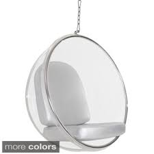 What kind of person bucks 40,000 years of man-kind's traditional seating? The coolest of the cool – that's who. With this chair, 'hanging out' with friends can be taken to a whole new level. The Hanging Bubble chair allows for defying gravity, and stodgy tradition, in one magical swoop. Suspended from the ceiling , means you're enveloped in a non-claustrophobic hanging bubble that can spin, rock, swing, or orbit as you see fit. Taken from the supernatural design of Eero Aarnio, this transparent, open sided, and surprisingly comforting bubble enables an enjoyment of 'sitting' along the same lines as the old front porch swing- yet with a very metro twist. Besides which- you can use it all year long and never once need to light a mosquito candle. Original versions of this anti-establishment chair can cost upwards of a ticket to the space station; smart shoppers with an earthly budget can get the Hanging Bubble chair right here. Pass the lemonade, darling, and beam me up. Suspended from the ceiling, this chair is simply out of sight, thanks in large part to its transparent acrylic sphere that gives it its name.