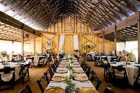 Located on 70 acres of private land, this property has plenty of natural beauty and vintage details. You can exchange vows lakeside beneath a canopy of willow trees, where you’re surrounded by open fields. Homey touches like a hand-made cedar arch and wedding pews add to the charm of the setting. Dining and dancing follows in the Barn, where a lofty ceiling, natural décor, and a unique wooden chandelier create an ambiance that’s both rustic and chic. Wedding packages include tables, chairs, linens, and lantern centerpieces, and for more decorations you can DIY or use their collection of hand-picked pieces. A red canoe is available for cute photo ops, plus there’s a rock fireplace near the lake for after-hours fun! This wood-framed barn has a genuine, down-home vibe, with a peaked, open-beamed ceiling, stable windows, and giant sliding doors. It’s got plenty of useful amenities, too, like climate controls, indoor restrooms, and catering prep areas. A paved terrace connected to the Barn is partially covered by a large portico that’s perfect for hosting a cocktail hour overlooking the water;