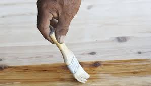 Then switch to fine sandpaper (200+ grit) until the entire piece is uniform. Wipe down the whole surface with a tack cloth to remove any dust from sanding. Staining is easiest to do with a staining pad. Dip the pad in the stain and wipe it on using long, even strokes. Then use a clean wiping cloth to remove excess stain. Wipe lightly with the grain to avoid streaking. You’ll need to apply multiple coats until you like the color. Keep following the same process but be sure to let the stain dry between coats so you can gauge what it looks like before deciding whether to add another coat. Once your last coat of stain is totally dry, apply an oil-based clear coat for a final layer of sheen and protection. Spray-on clear coat is easy to use and provides great coverage. Spray with a nice even motion following the natural lines of the piece. Apply two coats, sanding in between with 200-grit or higher sandpaper after the first coat is dry. This technique will smooth any imperfections from your first coat and give you a pro grade finish.