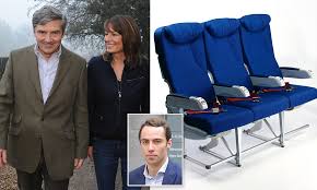 The chairs were described as 'really cool, funky seating', ideal for 'an office or waiting room' by the seller, according to The People. The bizarre presents, bought two weeks after the couple had seen daughter Kate marry Prince William in May 2011, also feature in-flight entertainment controls on the arm, seatbelts and tray tables. James, who reportedly signed up to eBay using his real name and address but changed them in May 2009, has made several purchases from the online auction site, and recently sold a broken-down stereo system for £40. However, one dissatisfied customer who spent £20 on a hand-me-down CD player from James said it was 'faulty and had previously been tampered with'. He set up his own business and runs a mail order cake company, but recently expanded into selling wine. According to the report, he commutes from the flat he shares with sister Pippa, 29, in Chelsea, to the family house where his office is and works 14 hour days. Mr and Mrs Middleton now run the party supplies website Party Pieces, which Mrs Middleton started from scratch by making party bags around her kitchen table.
