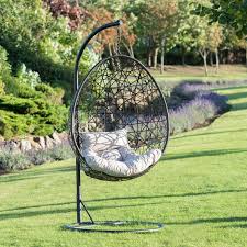 Bark Brown Mesh Hanging Egg Chair with Cushions Add To Wish List Ship to HomeShip to HomeLive Chat or Call 1-877-541-4855. You'll love soaking up the sun rays in the swinging and chic design of our Bark Brown Mesh Hanging Egg Chair with Cushions! The patio decoration you've been dreaming of, this egg chair has cozy and contoured shape perfect for lounging or curling up with your summer read. Overall chair with stand measures 43L x 34W x 66H in. Stand crafted of metal Chair and cushions crafted of all-weather fabric Chair hangs from stand with chain suspension hook Includes two (2) outdoor-safe cushions Holds up to 300 lbs. Not intended for commercial use Care: Safe for outdoor use. only, not available in stores.I'll say it up front: Hanging chairs are not for everyone. However, if you're willing to take a chance on a piece that's a little over-the-top, the effect is eye-catching and undeniably fun. To start your search, we've rounded up 10 stylish options that will take your home decor to new heights—and that you'll want to hang out in all day long.