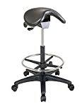 The stool features a gently contoured seat that conforms to the natural shape of your body and a curved back that's designed to support the lumbar spine area; both the seat and the back are made from a high-grade polymer. The fully adjustable height stool moves up or down with just a touch of a lever. This stool also features a solid chrome foot ring that all but eliminates leg fatigue. Adjustable Height Drafting Stool with Tractor Seat: Molded ''tractor-style'' seat 10'' height adjustment range Adjusts to bar stool seat height Chrome foot ring and base High-density polymer seat and back Floor glides on tractor seat stool Seat size: 17''W x 15''D Back size: 14''W x 10.5''H Seat height: 22.75'' - 31.25''H Overall dimensions: 17''W x 16.5''D x 32'' - 40.5''H Adjustable stool that is comfortable and provides ease of sitting Warnings: Warning Text: 2 yr Parts Specifications Pattern Type Count 1 Model Brand Frame Material Recommended Room Seat Back Height Maximum Weight Shape Age Group Recommended Use Recommended Location Cushion Fabric Is Assembly Required Y Condition Seating Capacity 1 Material Manufacturer Part Number Home Decor Style Features Assembled Product Dimensions (L x W x H) Does this chair come with wheels?