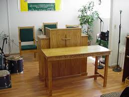 Read more about Church Chairs.. Dumas has solid wood communion tables, custom made in oak or sycamore in natural finish, stained or painted. Our communion tables have clean lines with traditional or modern trim to insure you get a communion table that fits your church’s decor and your budget. Read more about Communion Tables.. Flower Stands, Church Tables, Wall Crosses & Other Church Furnishings Dumas manufactures wood church furnishings, custom made in oak or sycamore in natural finish or painted finish. These church furnishings include small church tables, flower stands, lecterns, offering plates, signs, wood crosses, prayer rails, attendance boards and other furnishings to complete your church sanctuary. As is reflected in our 25 year warranty on our pews, Dumas Pews remains committed to ensuring that you and your congregation are always our top priority. Whether you are renovating a church (or courtroom) or building a new church facility, choose the name that has proven itself over the past 80+ years, choose DUMAS PEWS.